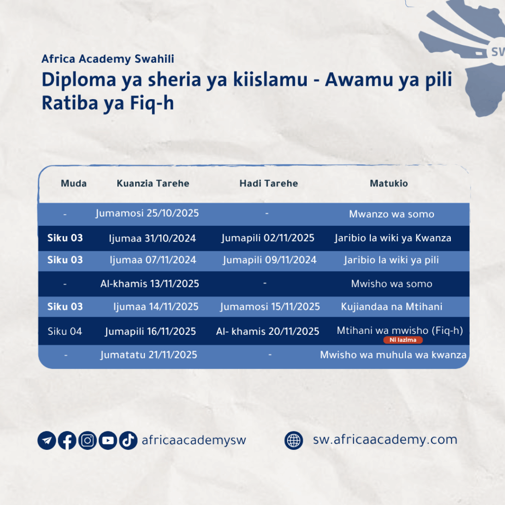 Akademia ya kwanza ya kufundisha Elimu ya Kisheria ya Kiislamu bila malipo na kwa njia ya mtandao kwa lugha ya Kiswahili.